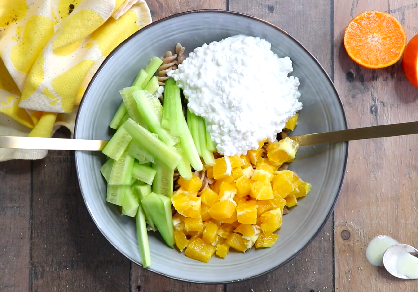 ENSALADA DE FUSILLI, NARANJA Y REQUESÓN